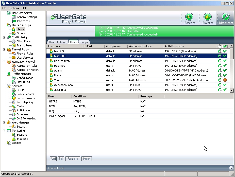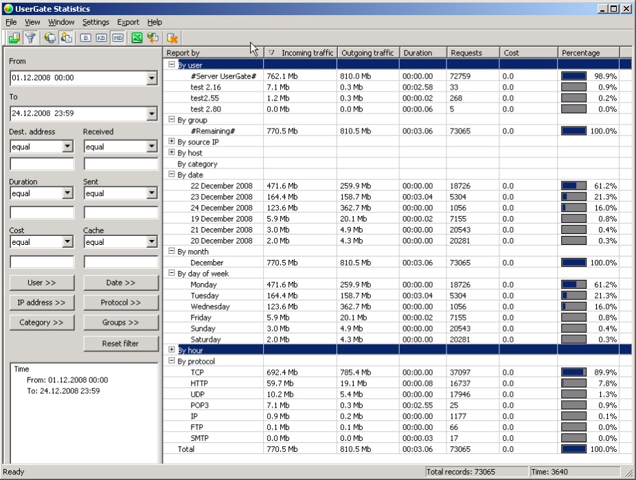 UserGate jest kompleksowym rozwiązaniem do współdzielenia dostępu do internetu pomiędzy pracownikami w Twojej firmie, tworzenia statystyk ruchu sieciowego oraz ochrony sieci lokalnej przed szkodliwymi działaniami oraz oprogramowaniem, takim jak ataki hakerów, wirusy i trojany. UserGate jest wszechstronnym i rozbudowanym programem, który może być stosowany w małych oraz średnich firmach w zastępstwie dużych i kosztownych alternatyw sprzętowych i programowych.