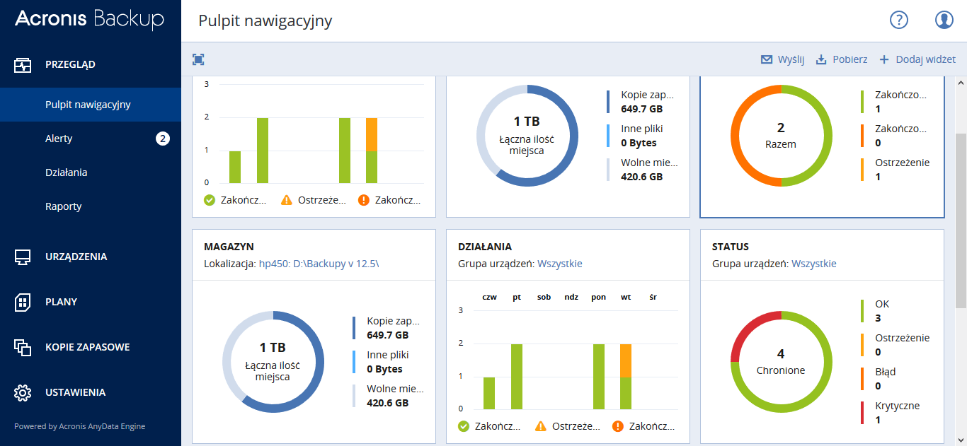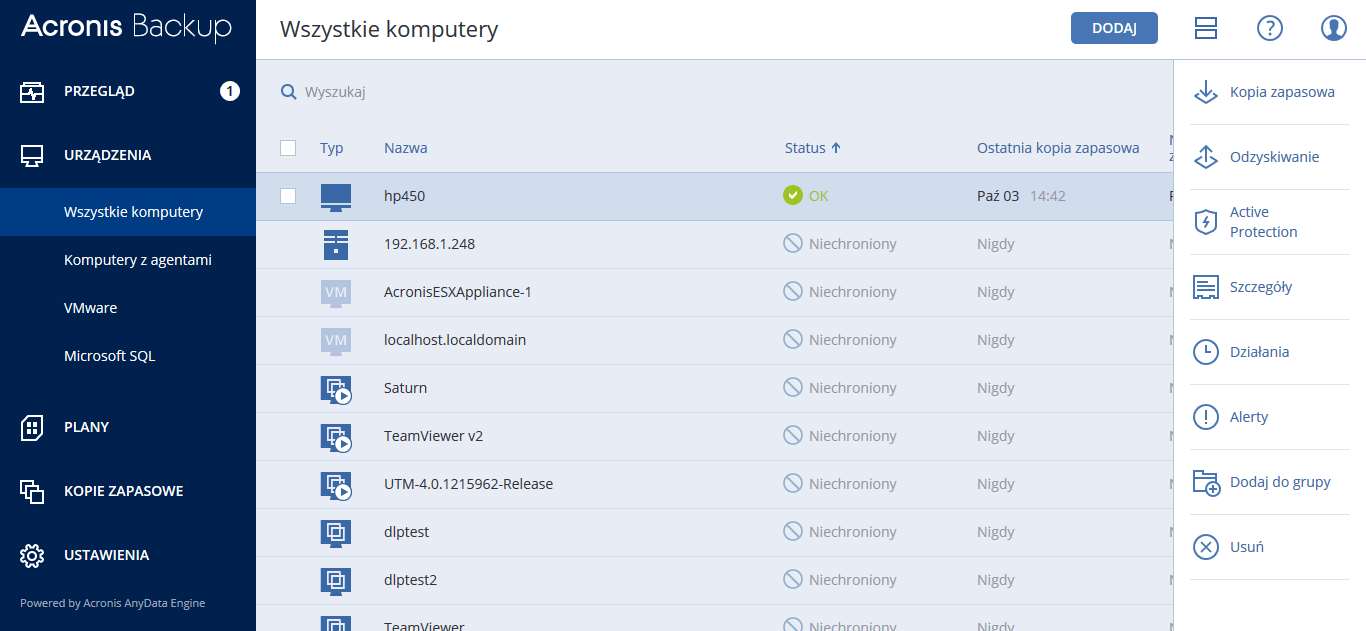 Acronis Backup 12.5 to najprostsze i najszybsze na świecie rozwiązanie do tworzenia kopii zapasowych wszystkich twoich danych: znajdujących się na systemach lokalnych, zdalnych, w chmurach prywatnych i publicznych oraz na urządzeniach mobilnych. Acronis Backup 12.5, dzięki ulepszonej weryfikacji kopii zapasowych i bazującej na blockchain autentykacji kopii wykonywanej za pośrednictwem funkcji Acronis Notary™, to najbardziej niezawodne na rynku rozwiązanie do tworzenia kopii zapasowych.