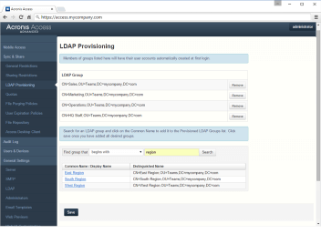 Acronis Files Advanced integruje się z Active Directory, ułatwiając uwierzytelnianie i zarządzanie użytkownikami.