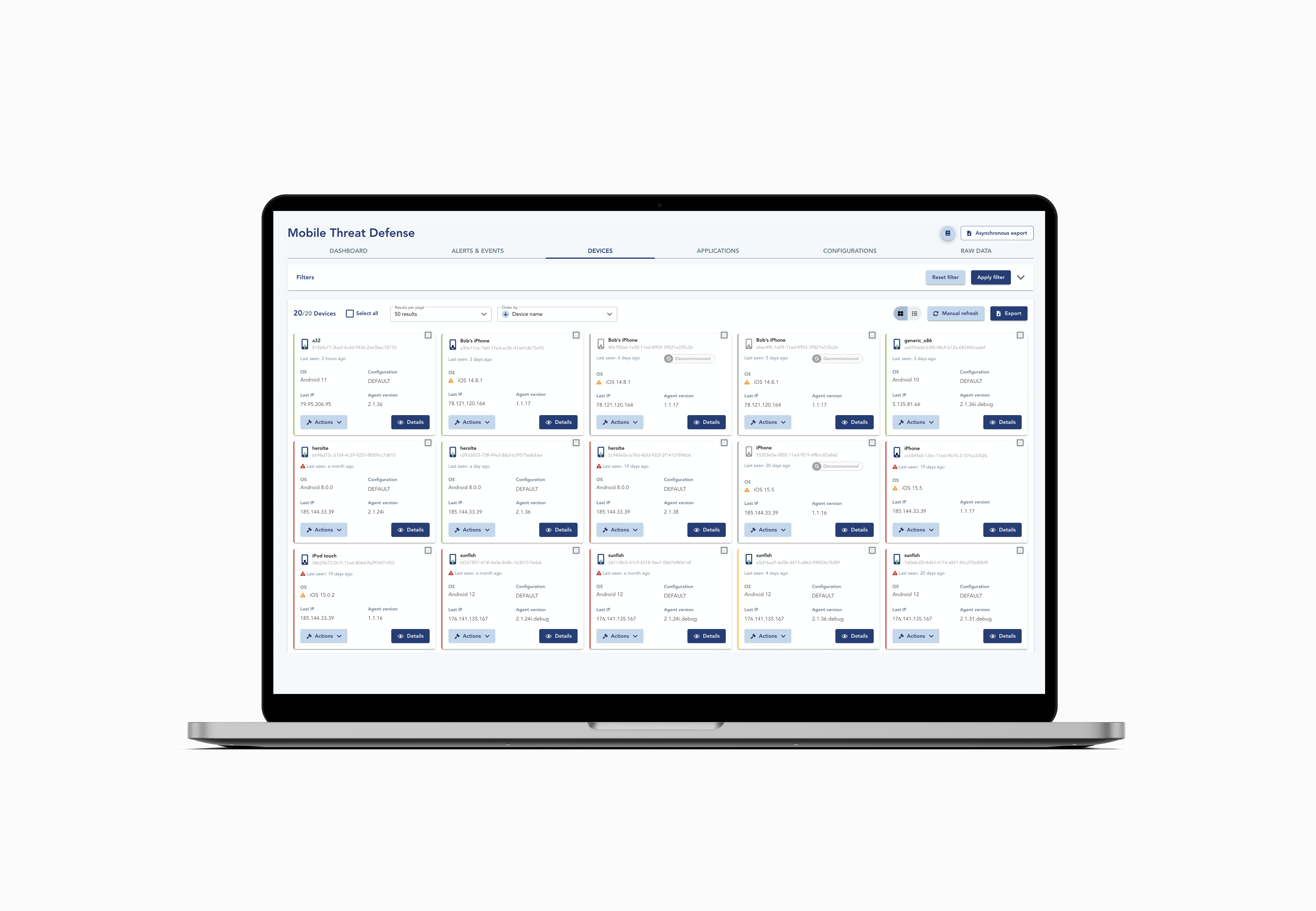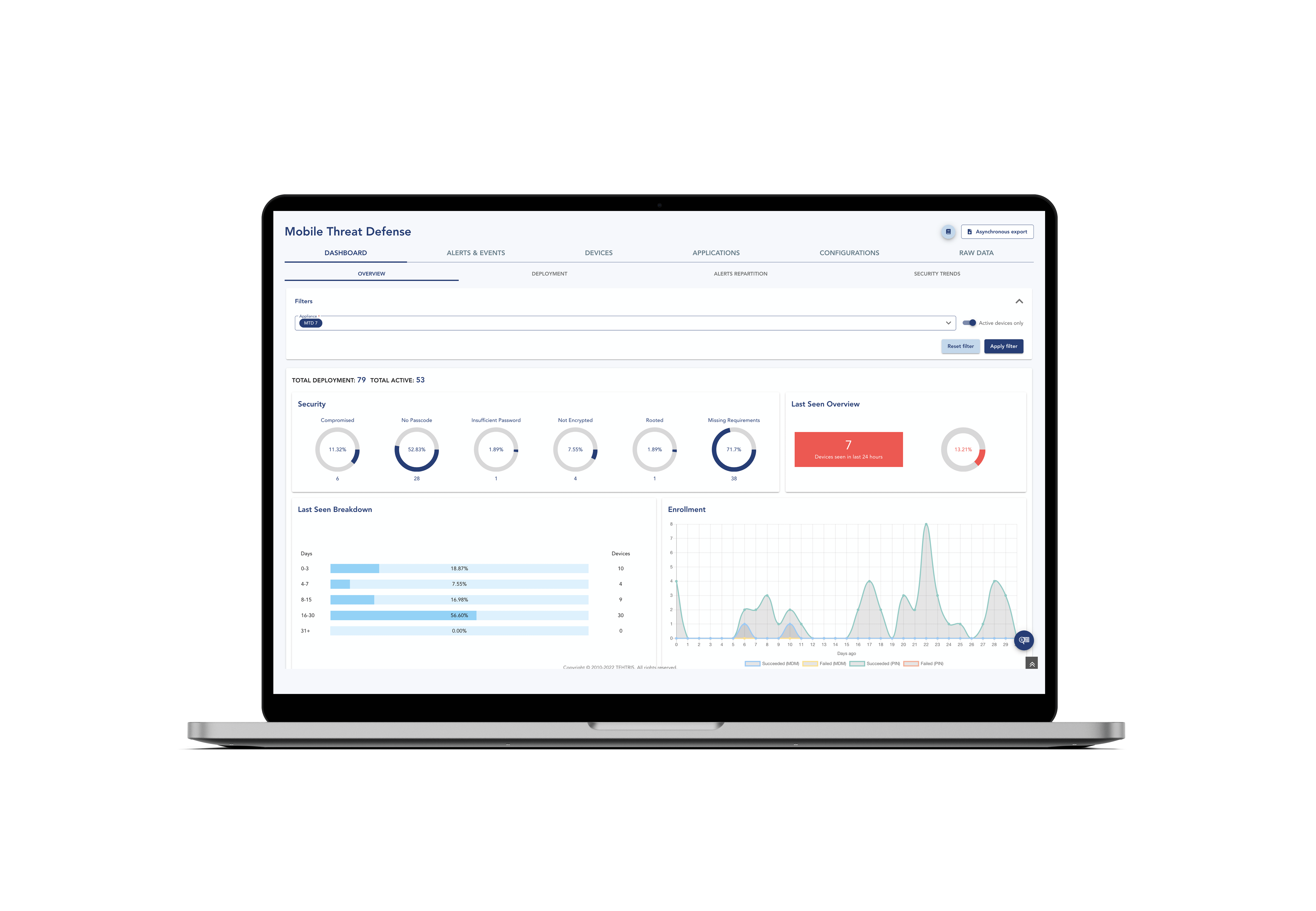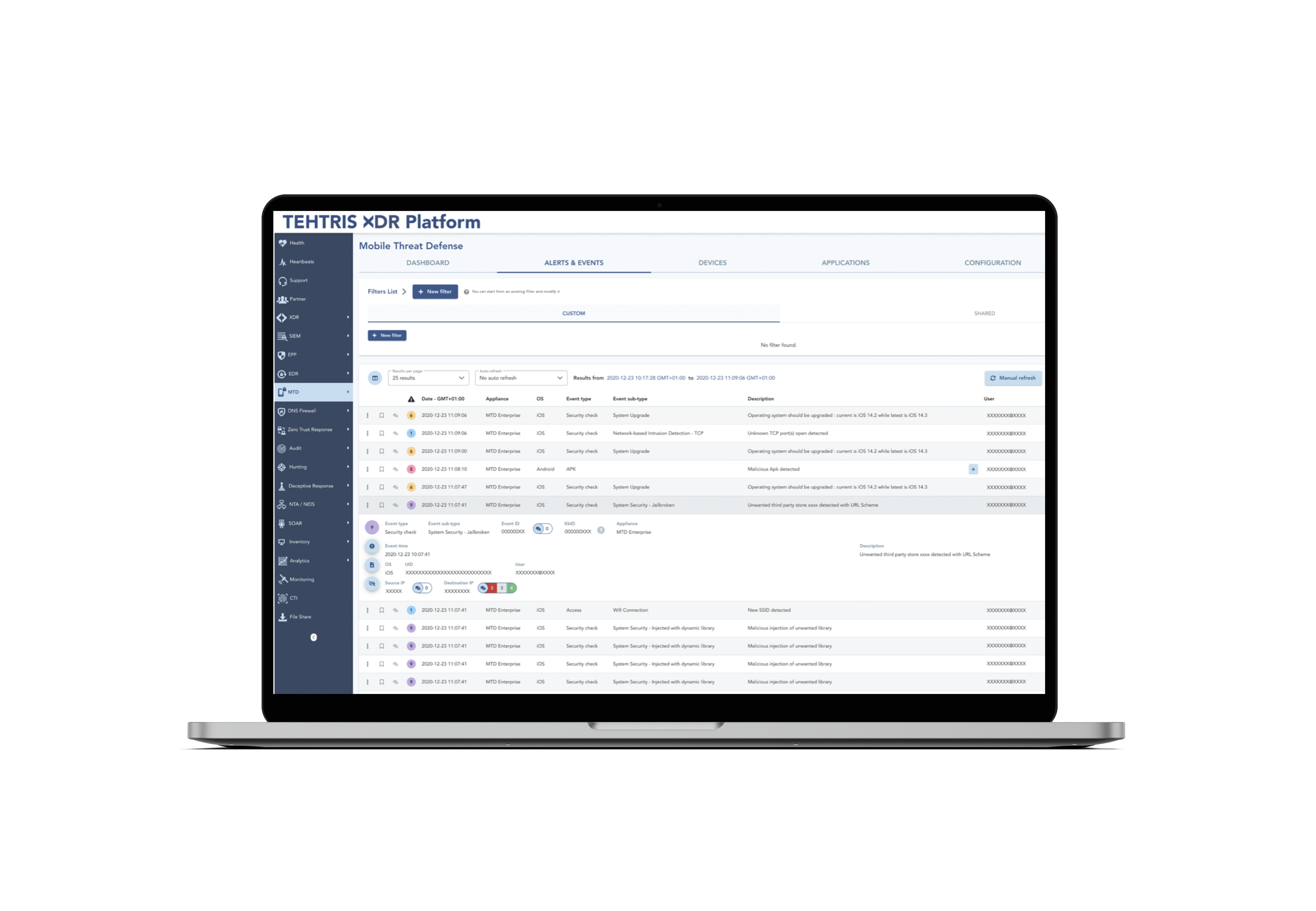 TEHTRIS MTD wykrywa anomalie w sieci, aplikacjach i systemach, przy jednoczesnym zapewnieniu pełnej zgodności z wymogami. Nasze rozwiązanie oferuje błyskawiczną ochronę przed atakami na urządzenia z systemem Android, iOS oraz iPadOS.